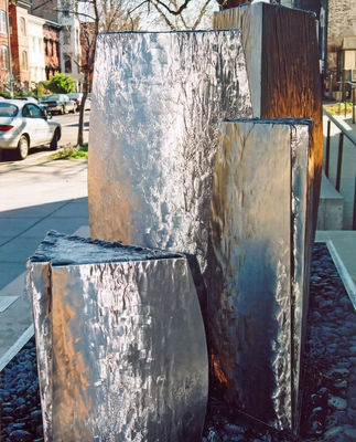Escultura de fonte de cachoeira em metal inoxidável para decoração de jardim ao ar livre