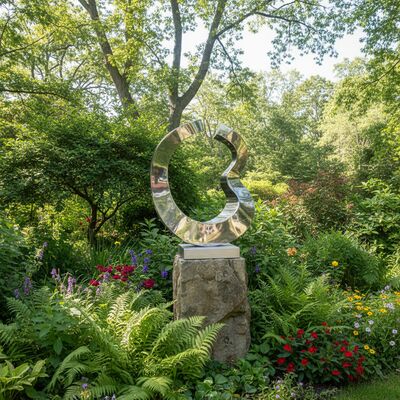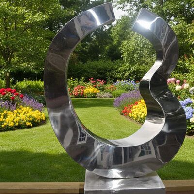 Esta escultura contemporânea apresenta uma forma fluida e abstrata, feita de aço inoxidável polido de alta qualidade. Sua superfície reflexiva cria uma interação dinâmica com a luz e o ambiente, tornando-a um ponto focal marcante para qualquer jardim, gramado ou paisagem.