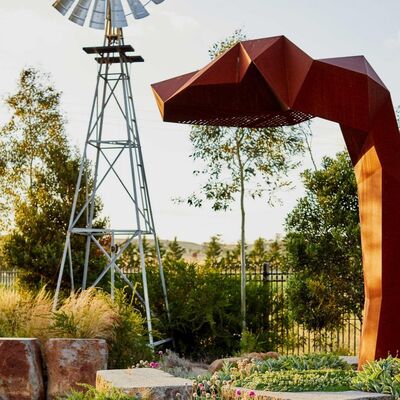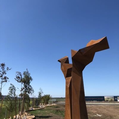 Criada a partir de aço para intemperismo distinto, esta escultura captura a forma dinâmica de uma serpente. Projetada para instalação ao ar livre, sua silhueta marcante e o acabamento de pátina de ferrugem em evolução criam uma declaração visual poderosa, garantida para atrair o olhar.
